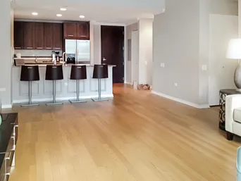 Beautiful 2 bedroom, 2 bathroom plus den in the heart of Streeterville. Unit has a split floor plan with floor to ceiling windows, hardwood floors in living room and primary bedroom and in-unit washer/dryer. The den is perfect for a home office. Unit faces north with fantastic CITY VIEWS! Kitchen features espresso cabinets and light gray granite with breakfast bar. Balcony off of living room. Great building with lots of amenities: pool, fitness room, theatre room, dog run, roof deck, two gyms and a party room. Whole foods is located on the 1st floor of this building. Walk to everything from this location...Michigan Ave, Ohio St Beach, Millennium Park, Northwestern and Navy Pier. Deeded Garage Parking additional $40k. Building has public garage as well for guests. Pictures on MLS are from a previous tenant.